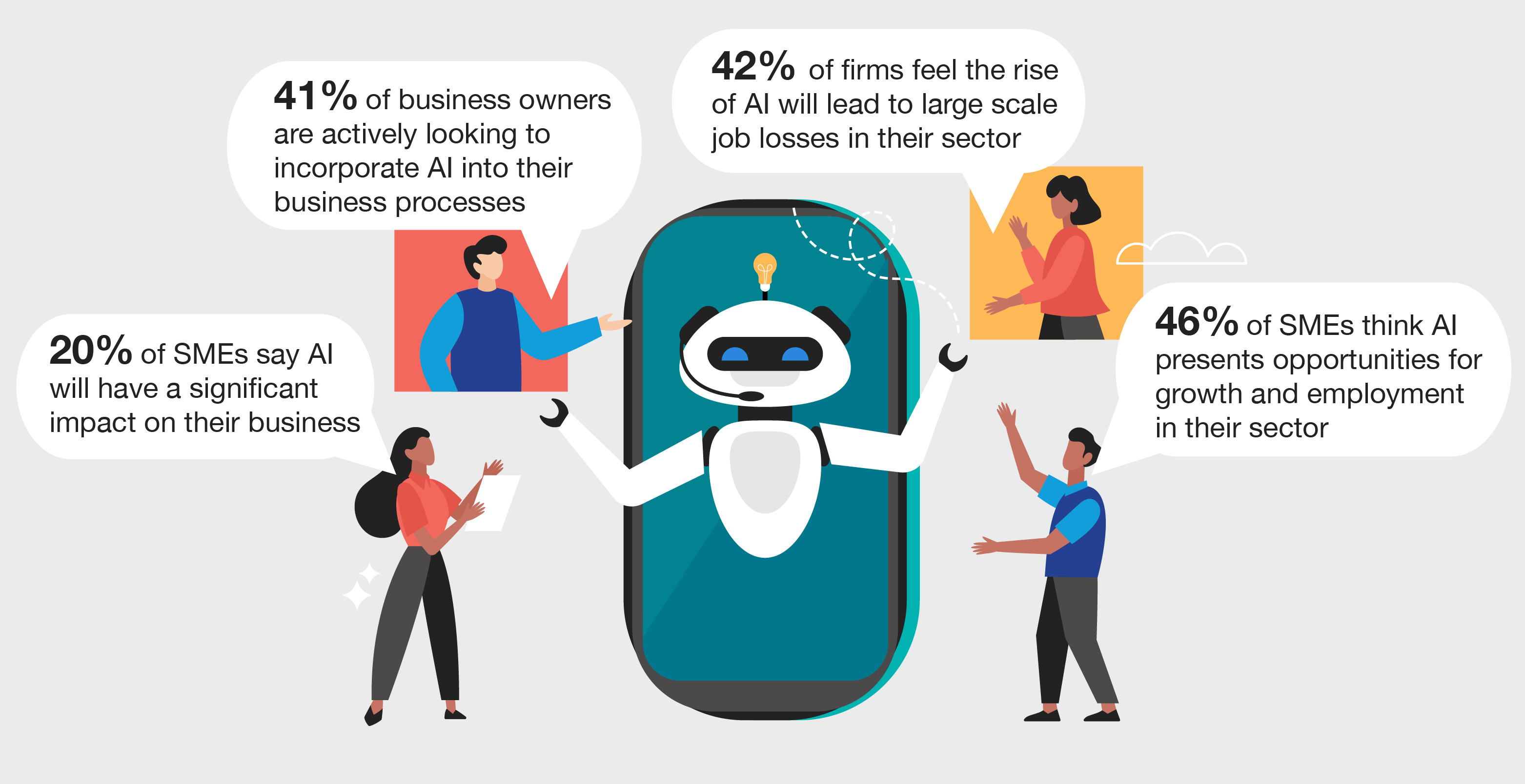 - 46% of SMEs think AI presents opportunities for growth and employment in their sector